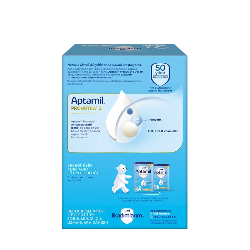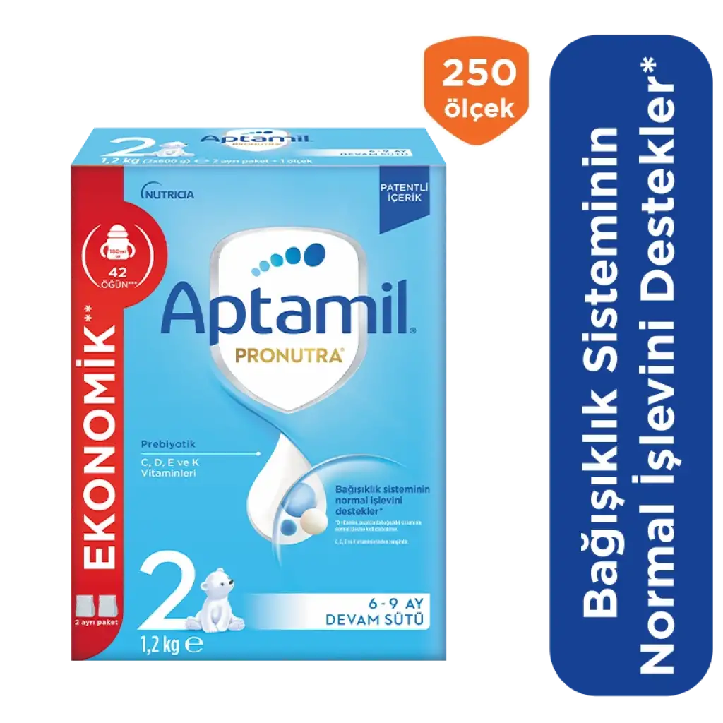 Aptamil 2 Devam Sütü, 6–9 ay arası bebeklerin artan enerji ve besin ihtiyaçlarını karşılamak için geliştirilmiştir. Pronutra Advance teknolojisiyle zenginleştirilmiş özel formülü, prebiyotik karışım (scGOS/lcFOS), D vitamini ve kalsiyum ile bağışıklık sistemini destekler.