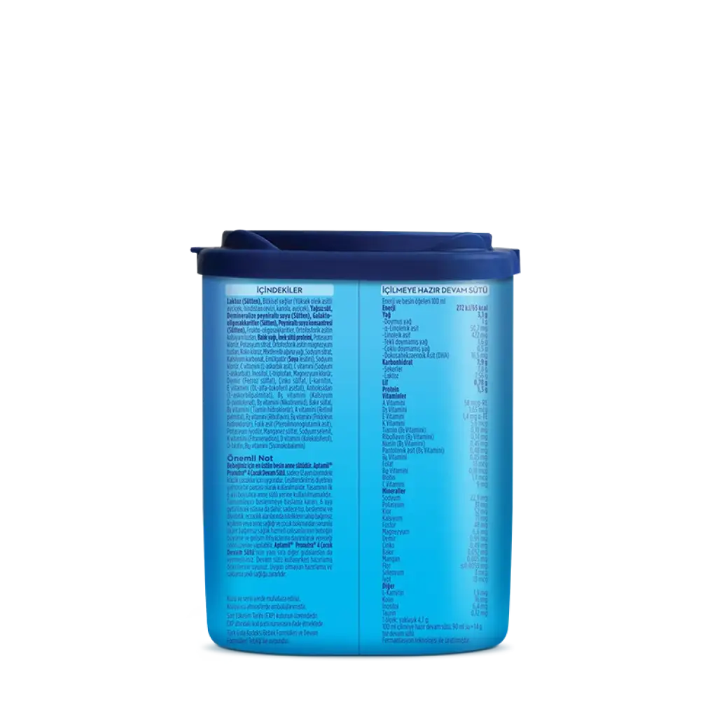 Aptamil 4 Çocuk Devam Sütü, 1 yaş ve üzeri çocukların artan enerji ve besin ihtiyaçlarını desteklemek için özel olarak formüle edilmiştir. Pronutra Advance teknolojisiyle zenginleştirilmiş bu özel formül, D vitamini, kalsiyum ve prebiyotik karışım (scGOS/lcFOS) sayesinde bağışıklık sisteminin güçlenmesine ve kemik gelişiminin desteklenmesine katkı sağlar.