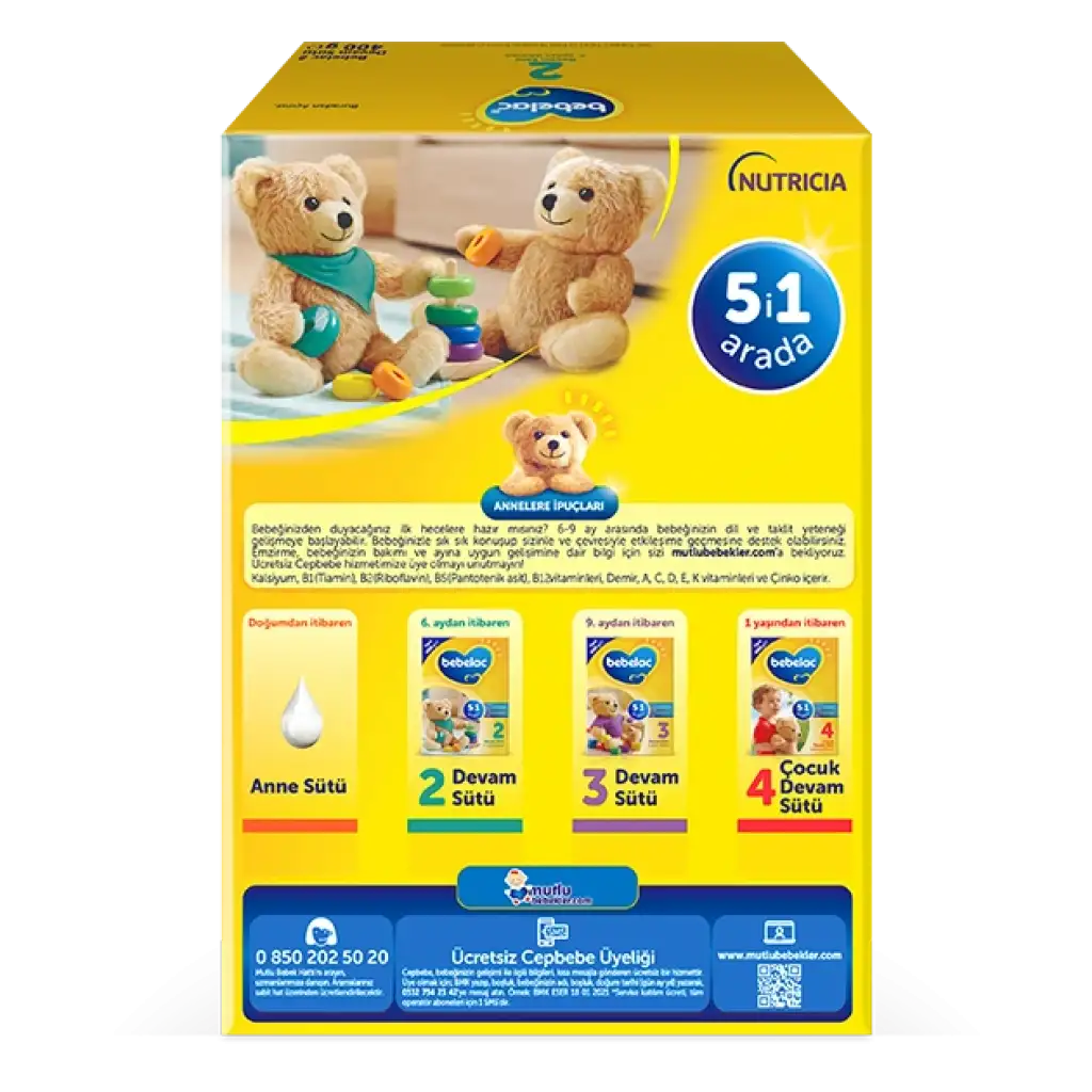 Bebelac 2 Devam Sütü, Avrupa kalite standartlarına uygun olarak üretilmiştir. Kolay çözünen toz yapısıyla pratik kullanım sunar ve bebeğinizin günlük enerji ihtiyacını karşılamaya yardımcı olur.