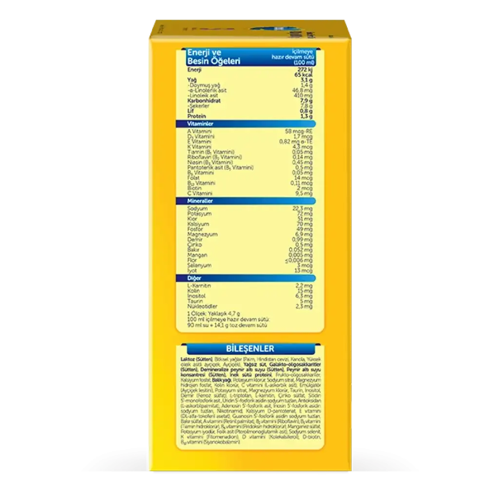D vitamini, kalsiyum ve çinko içeriğiyle kemik ve diş gelişimini destekler. Bebelac 3, bebeğinizin gelişen metabolizmasına uygun, anne sütü sonrasında güvenle kullanılabilecek bir devam sütüdür.