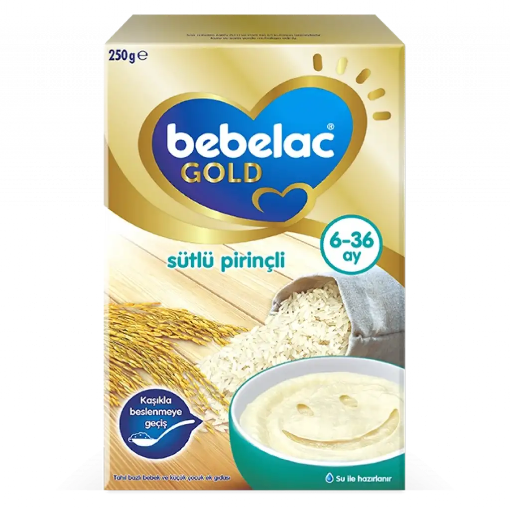 Bebelac Gold Sütlü Pirinçli, 6 ay ve üzeri bebeklerin ek gıdaya geçiş döneminde enerji, kalsiyum ve vitamin ihtiyaçlarını karşılamak için özel olarak formüle edilmiştir. Gerçek süt ve pirinç içeriğiyle bebeğinizin gelişimini destekler.